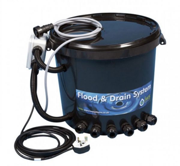 Both ways of using the brain pot uses gravity to send water to the pots and only uses pumps to fill and drain the main 25 litre control bucket which has two quality magnetic float-valves mounted inside to control the power to the pumps in both the tank and the controller bucket.These floats control the flood level in the growing medium precisely to stop any over watering or flooding.