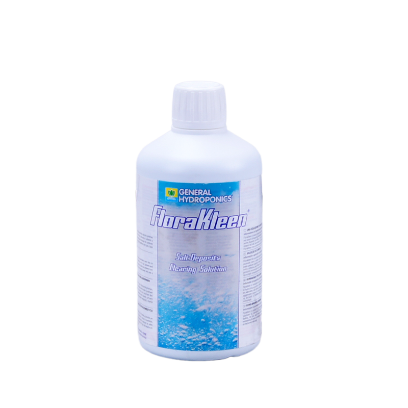 General Hydroponics Flora Kleen is a salt clearing solution that is unique in our industry. FloraKleen is formulated to remove fertilizer residues that can accumulate over time in hydroponic systems, growing media, and potting soils. It is safe for use in all systems and media while plants are growing. It can also be used between crops to clean the systems from accumulated salts. Unlike other products on the market, it is not enzyme based and uses a completely different technology.