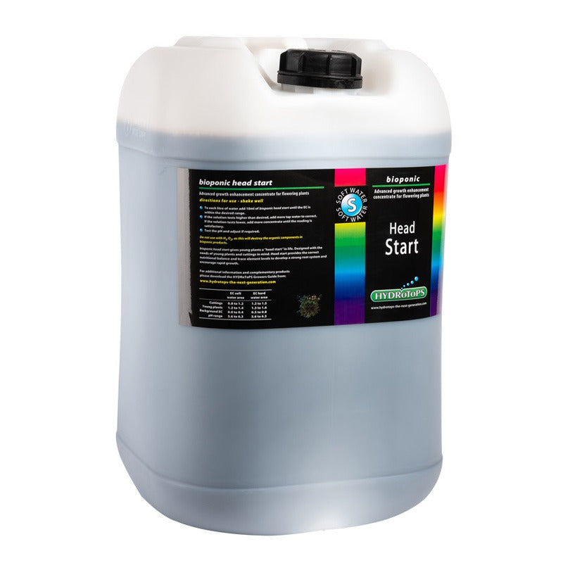 Head Start is a fully balanced, single part biologically active nutrient concentrate developed with the needs of young plants and cuttings in mind. It is the ideal nutrient for your cuttings and young plants and all your propagation needs. Blended with humic and fulvic acid fractions at the optimum ratio with finely balanced nutrition from earth friendly resources. bioponic head start supplies full trace elements and calcium at the correct ratio for young plants to build a strong foundation before moving to the growing phase of your crop.
