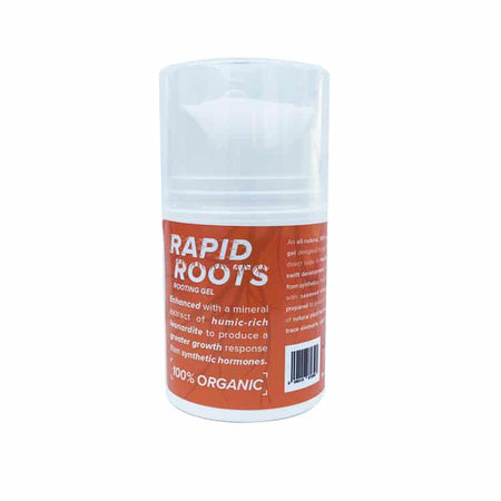 Get your cuttings and seedlings on the direct route to healthy, structured, swift development with Rapid Roots. This all-natural, 100% organic rooting gel offers significant gains over its synthetic rivals for a simple reason. Rapid Roots completely preserves the natural plant hormones, vitamins, trace elements, and other nutrients present in the seaweed from which it is derived. This maximises root cell development and seedling growth in ways that synthetic competitors cannot. By taking this natural path from the start youre setting your plants up for vigorous growth, robust defences, and healthy harvests. Uptake and transportation of nutrients is accelerated by Rapid Roots added extract of humic-rich Leonardite. By helping your plants feed faster, more efficiently, and more completely, this vegetable substance, formed over many millions of years, helps boost cell division and prolific growth.Simply take your cutting, dispense gel into a small container and coat the bottom to the stem with 2cm of Rapid Roots gel. Once the stem is coated transfer immediately to your propagator. Maintain the cutting in moist conditions conducive to growth until the plant has effectively rooted.